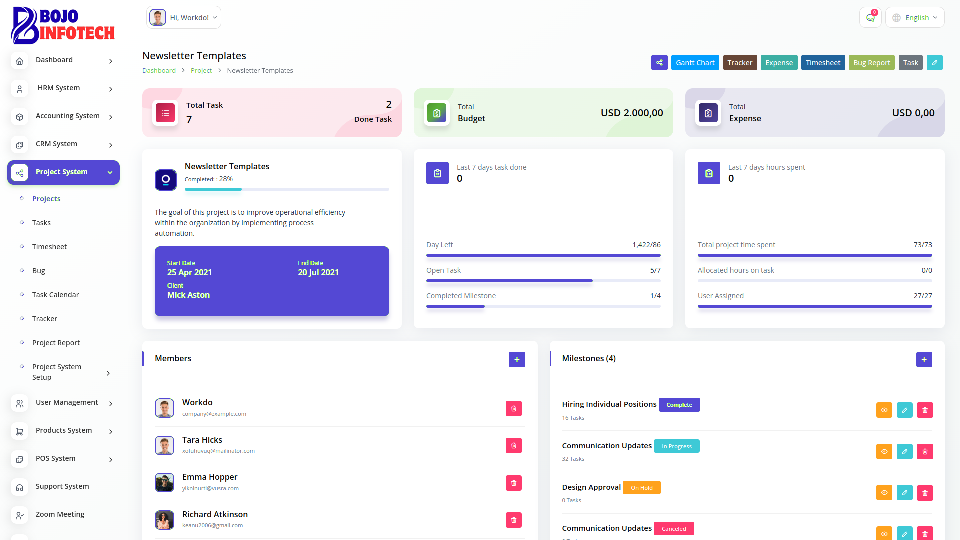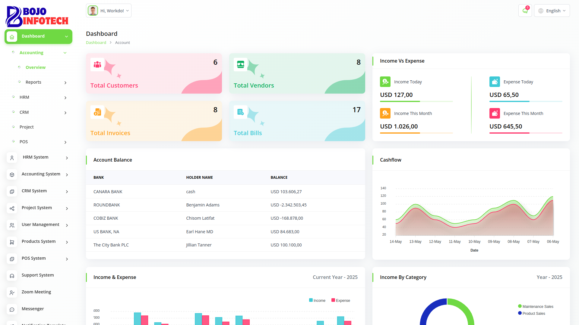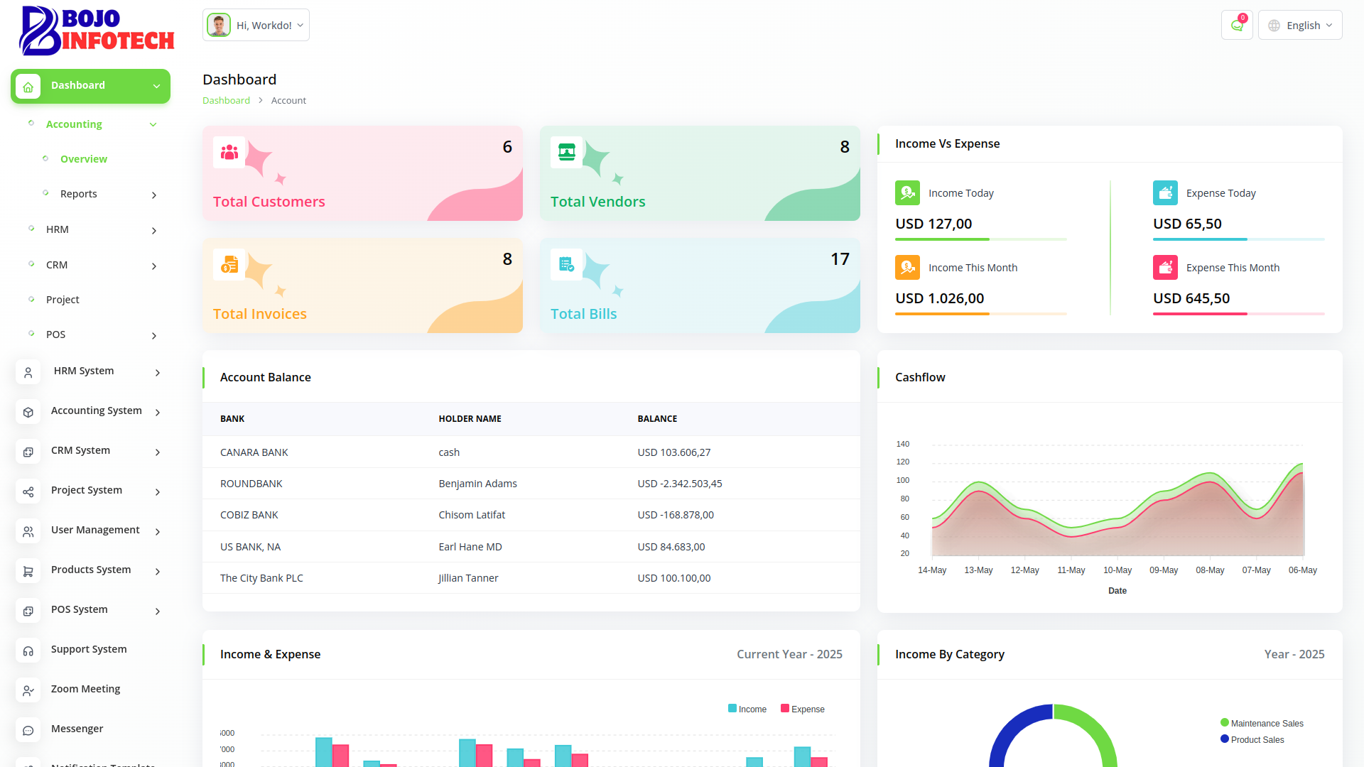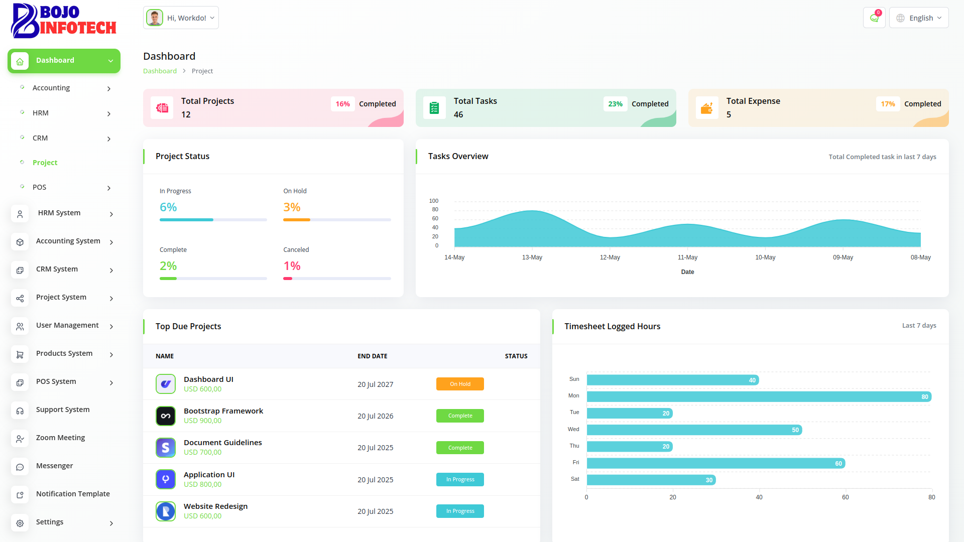 Bojoinfotech Corporate Suite With Project, Account, HRM, CRM & POS